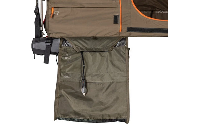 Ein erholsamer Schlaf ist garantiert mit der 5 cm dicken Matratze aus hochdichtem Schaumstoff, die groß genug ist für zwei Personen. Der Einstieg in das Zelt ist dank der leichten Ausziehleiter aus Aluminium ganz einfach.