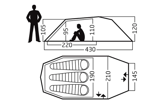 - äußerst geräumiges 3-Mann-Tunnelzelt