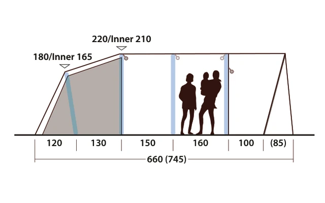 • Netztaschen in den Innenzelten dienen zur sicheren und griffbereiten Aufbewahrung kleinerer Gegenstände Große, getönte Fenster mit Reißverschlussvorhängen